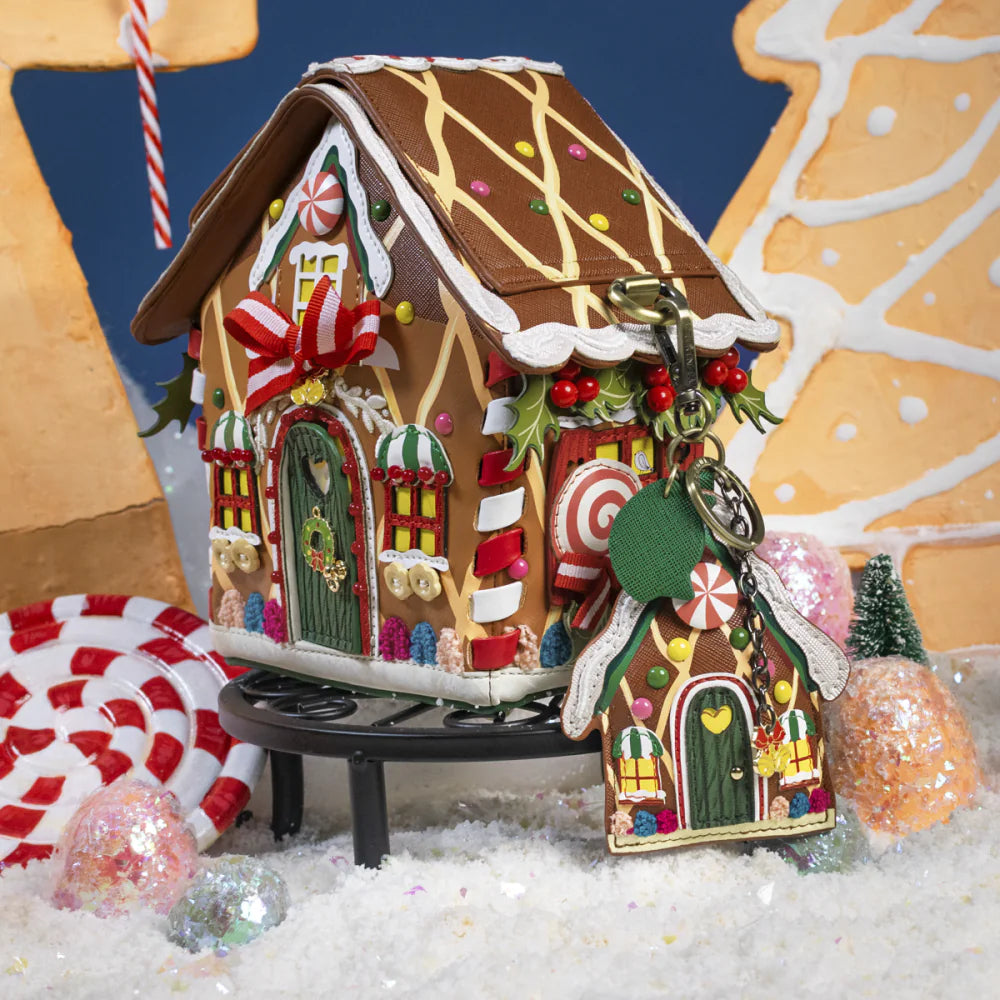 The Gingerbread Houses House Key Charm is a miniature replica of the house bags and backpacks. With its snowy rooftop, golden bells, and colourful candy details, this charming vegan leather accessory will steal hearts all season long. Use it as a bag charm, keyring, or gift it as the ultimate stocking filler—either way,
