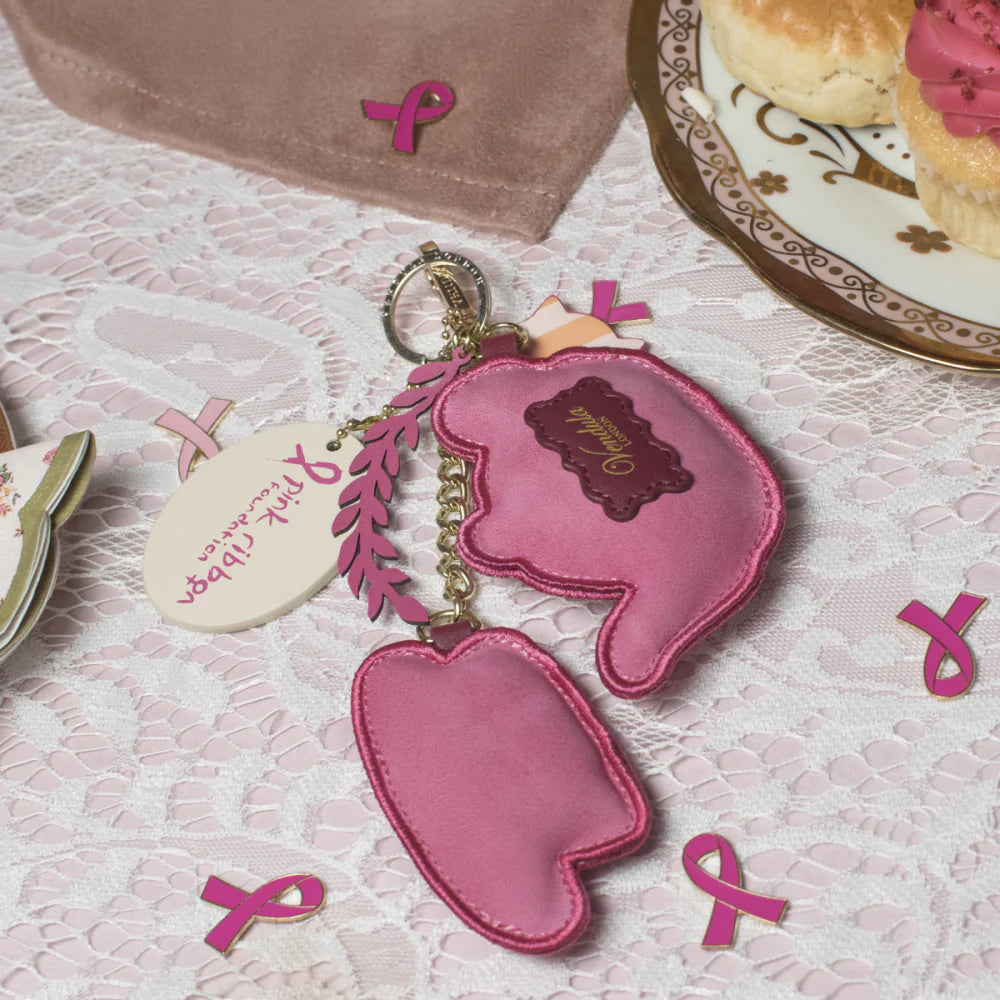 Raise your teacups – the Perfectly Pink Afternoon Tea Bus Key Charm has arrived! Crafted from vegan leather and made up of two charms – a teapot and a teacup – this sweet accessory can be clipped onto your bag or used as a keyring. With delicate rose stitching and varying shades of pink, it complements any piece from the Pink Ribbon range. Whether you’re sprucing up an older favourite or adding flair to a new handbag, this key charm is a delightful way to carry a little joy wherever you go.