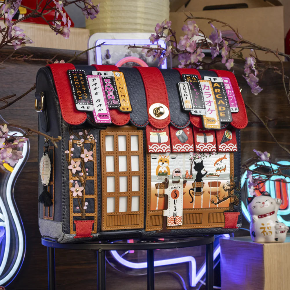 The Vendula Sushi - Blue Edition Box Bag is a stylish bag from Vendula London and is perfect for everyday use. Carry it over the shoulder or crossbody with its adjustable strap, and rest assured that the base studs will keep it stable on any surface. Feeling peckish? Just take a look at your bag: this bustling Japanese restaurant-themed design with its many colourful details will make you crave sushi and draw attention to you all season.