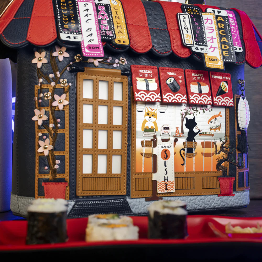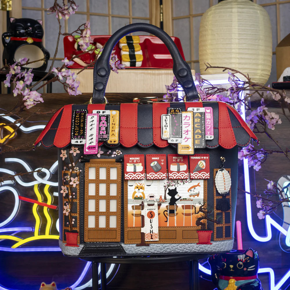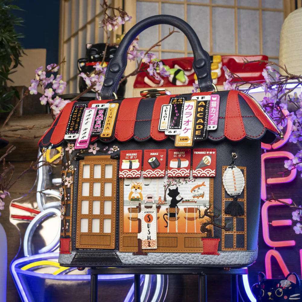 The Vendula Sushi - Blue Edition Grab Bag look is simply gorgeous. It’s roomy and perfect for everyday use, holding everything you need, including a matching coin purse or wallet. Wear it over the shoulder, crossbody, or by the handle—either way, it will add a touch of style to your spring, summer, autumn, and winter outfits. And stylish it is: this Japanese restaurant-inspired artwork with its vibrant details will make heads turn wherever you go. Don’t forget to add a matching coin purse, phone case, or even a key charm to complete the look!