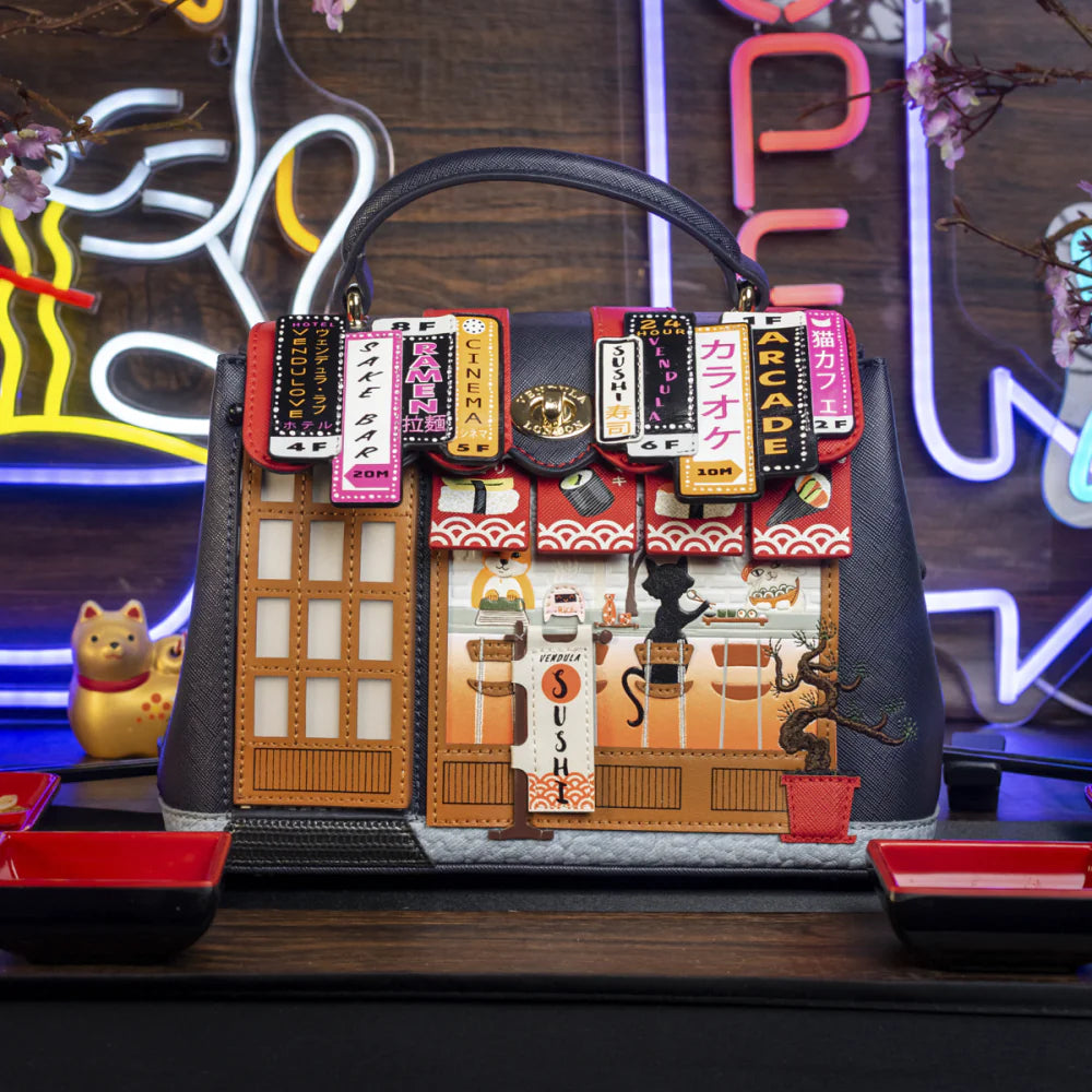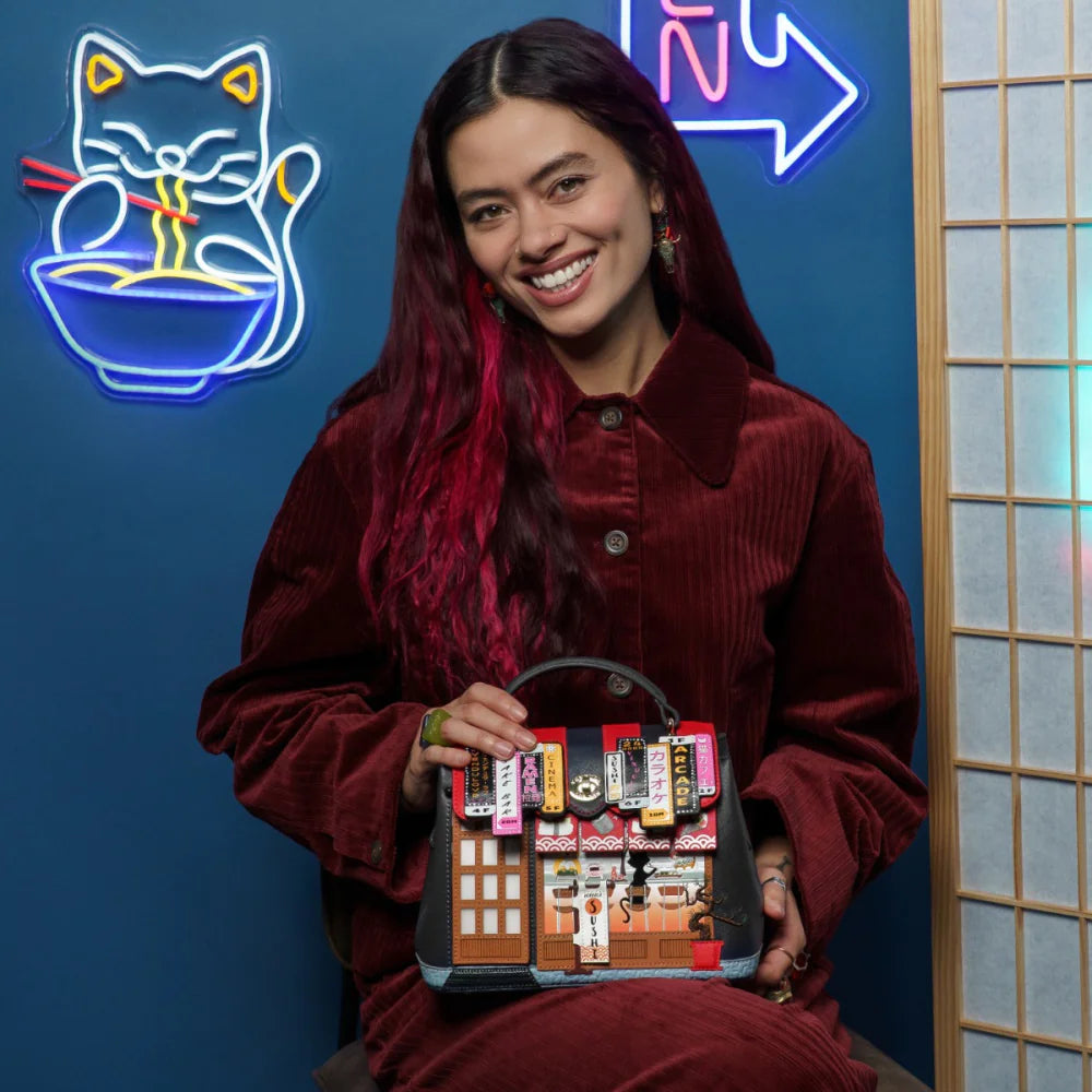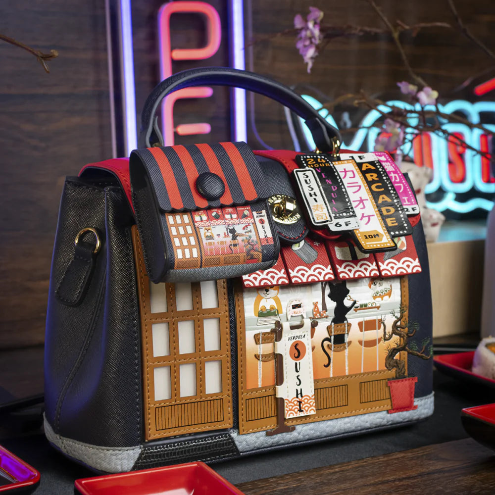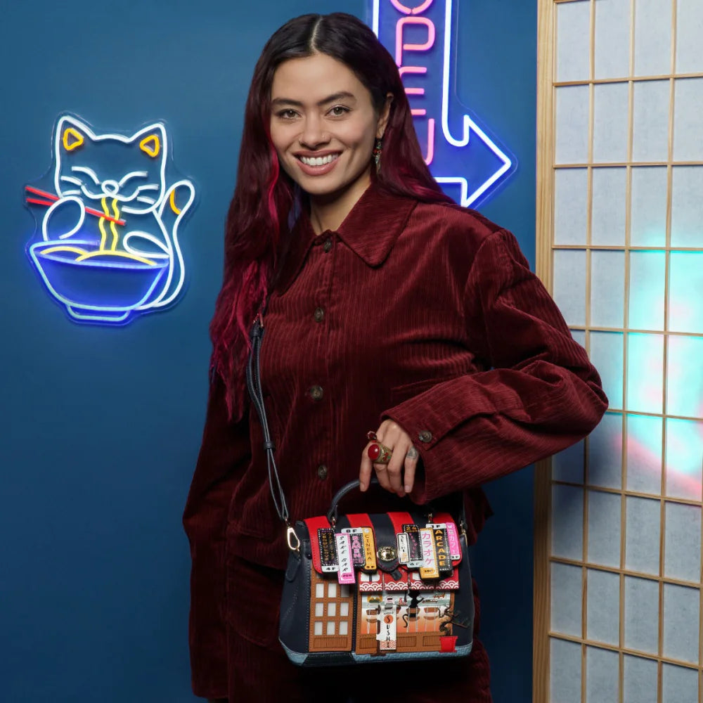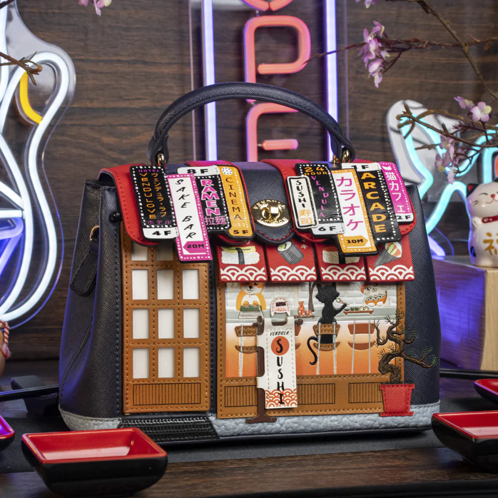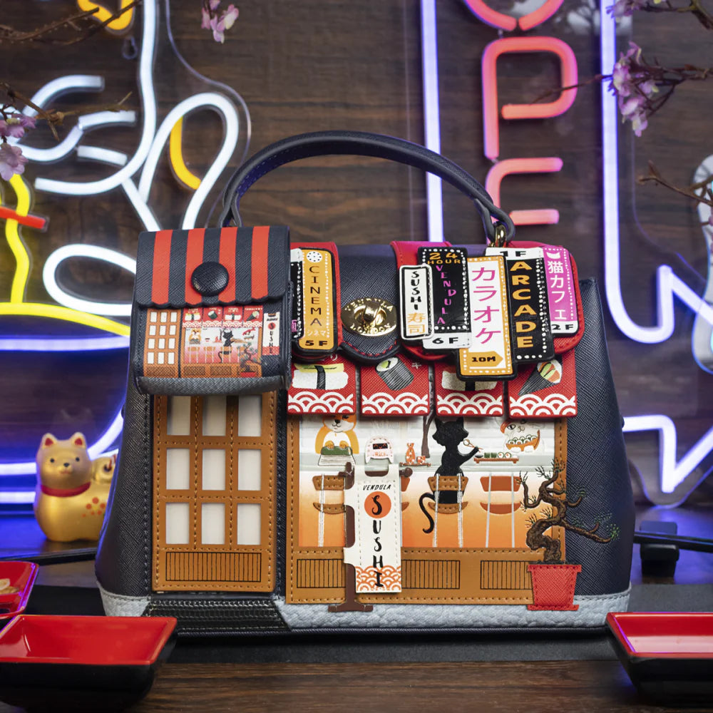 The Vendula Sushi - Blue Edition Mini Grace Bag, a smaller version of the original Grace Bag, is every Vendulette’s dream come true! Made from vegan leather, this handbag is perfect for daily use, come rain or shine. It features a spacious compartment and several pockets to accommodate all your essentials—and more. Moreover, it can be carried as a handbag, over the shoulder, or crossbody thanks to its detachable and adjustable strap. This new addition to the Vendula Sushi range looks stunning in taupe, with traditional Japanese restaurant-themed artwork