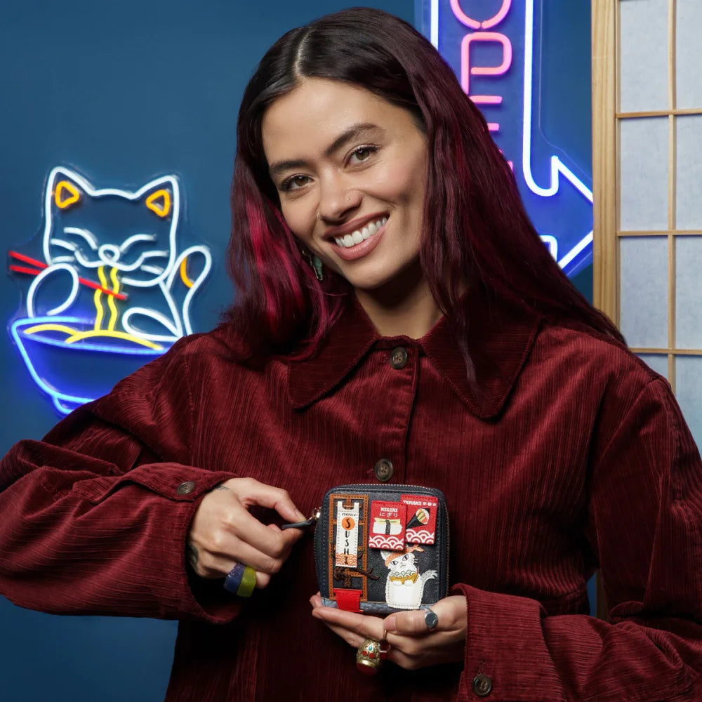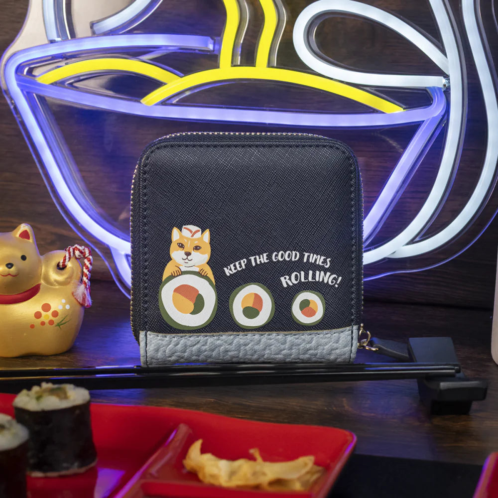 The Vendula Sushi - Blue Edition Square Wallet is the one for you! Compact yet practical, this vegan leather accessory fits easily into any handbag. It features card slots, a dedicated cash pocket, and a secure ziparound closure to keep everything safe. Adorned with stunning Japanese restaurant-themed artwork and vibrant details, it’s a must-have for any Vendulette who values functionality and flair. Elevate your wardrobe with this standout piece!