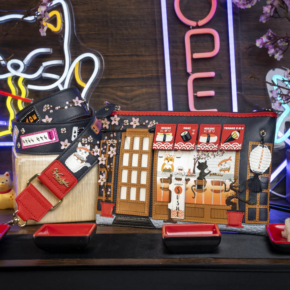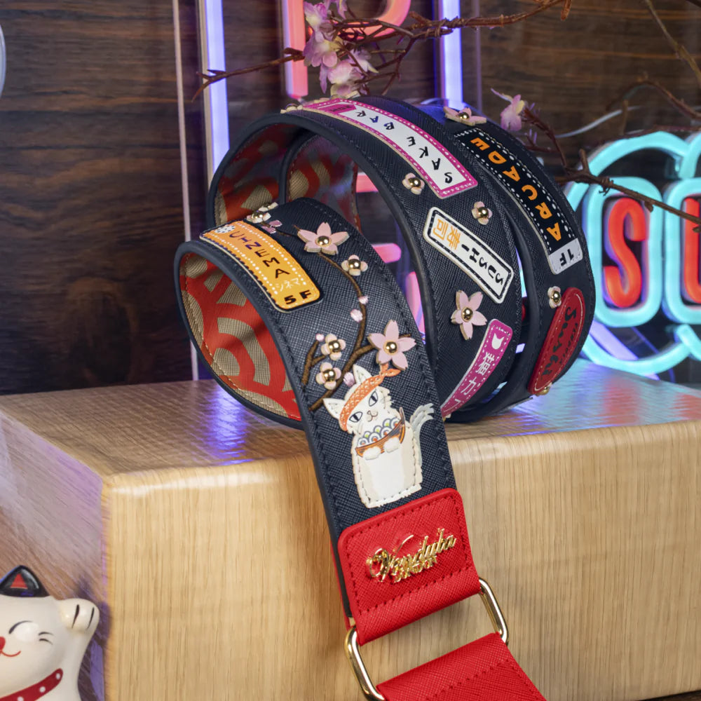 Complete your look with the Vendula Sushi - Blue Edition Wide Shoulder Strap! This vegan leather accessory is compatible with any bag that features a detachable strap, offering versatility and comfort for daily use. It’s wide enough to sit snugly on your shoulder and can be tucked inside your bag when not in use. Featuring a mix of printed and 3D details on both sides, this strap allows you to switch up your style depending on your mood. Add it to your collection to create the perfect ensemble this season! Compatibility; Our Wide Shoulder Strap can be used with any bag that has a removable strap or handle! It may not be suitable for bags where the straps are fixed or sewn-in